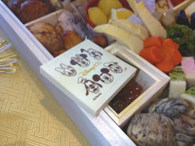白木重箱のを使用したディズニーの特段重おせち。まさにお正月を飾るのに相応しいおせちのです。