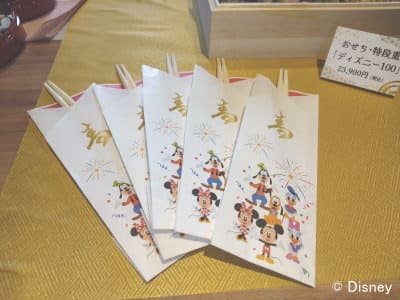 おせちの中身は、前出の「ミッキー&ミニーおせち三段重」と同じです。